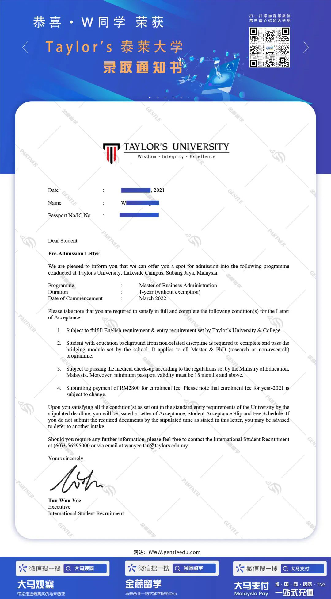 最终的结果不出所料,我成功地拿到了泰莱大学工商管理硕士的offer。