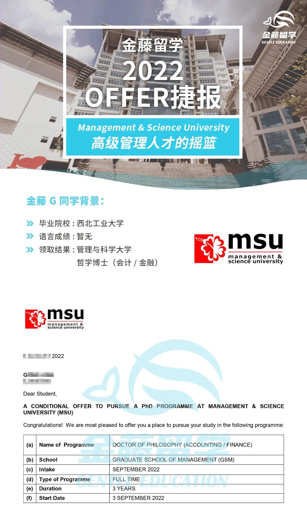 马来西亚管理与科技大学 Offer +1!恭喜金藤 G 同学获得工商管理硕士录取!